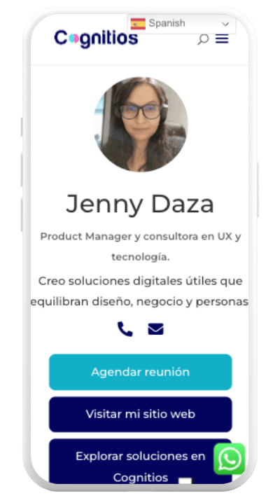 Incluye WhatsApp, email, teléfono o link de agendamiento en un clic.
