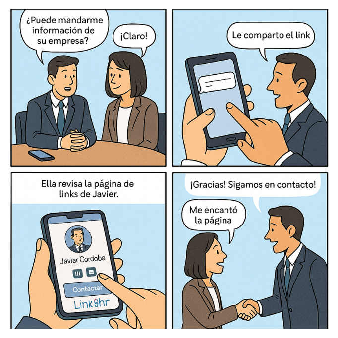 Linkshr convierte cada perfil del equipo en una página de contacto profesional dentro de tu propio sitio, manteniendo la coherencia visual, el control de marca y facilitando la conexión con clientes o aliados desde cualquier canal.