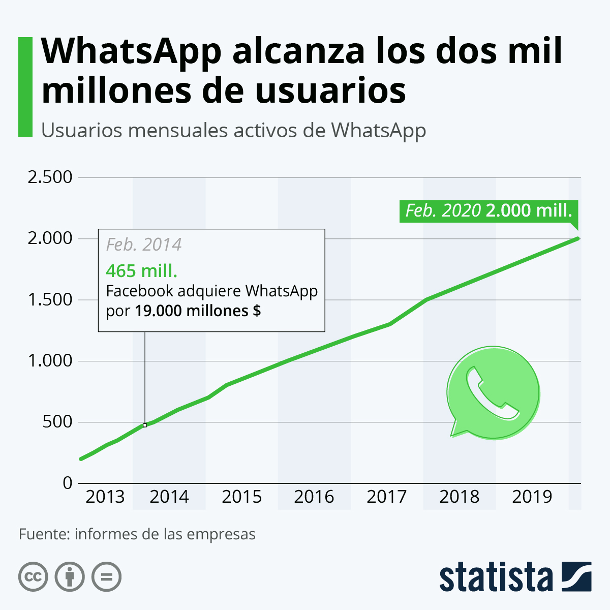 • Popularidad, Whatsapp tiene más de 2000 millones de usuarios en el mundo.